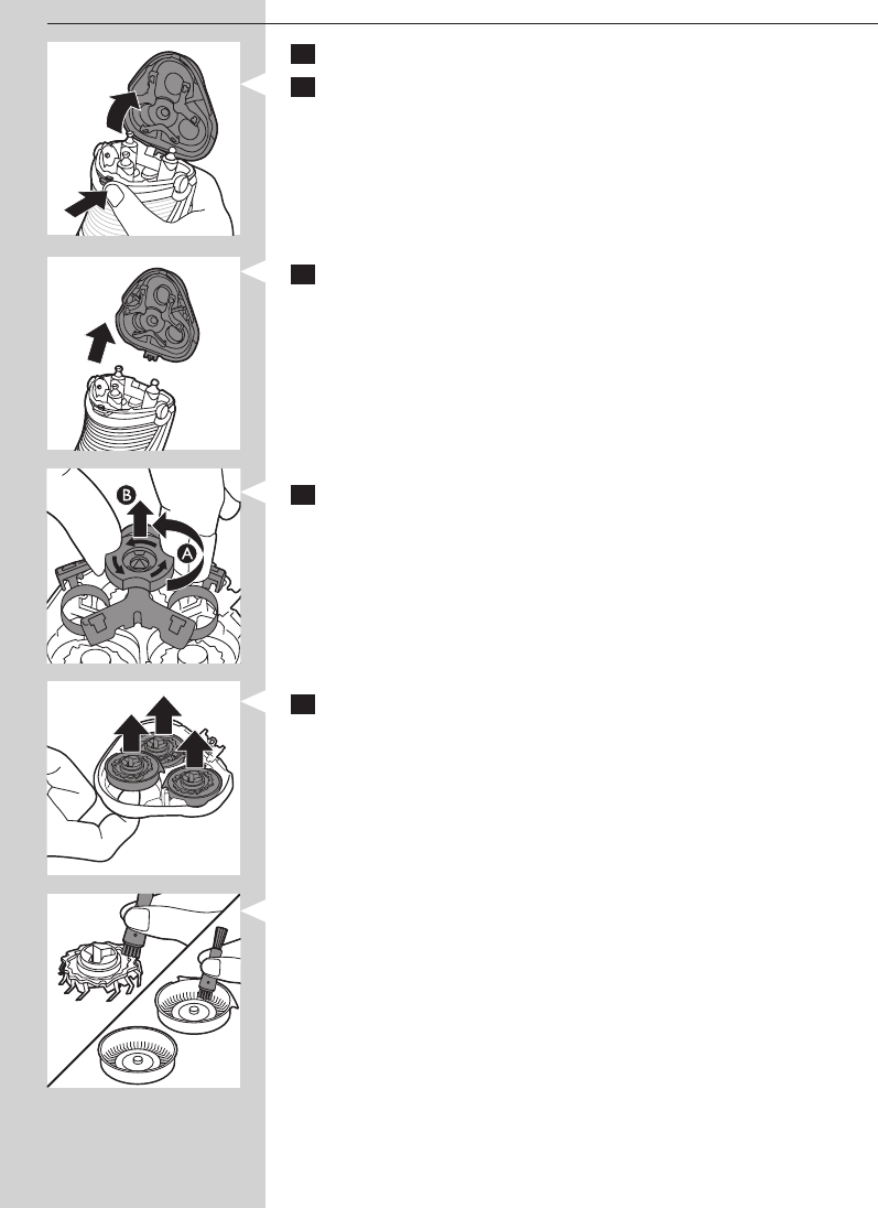 5 Odstranite in očistite vsako brivno glavo posebej. Vsaka brivna glava