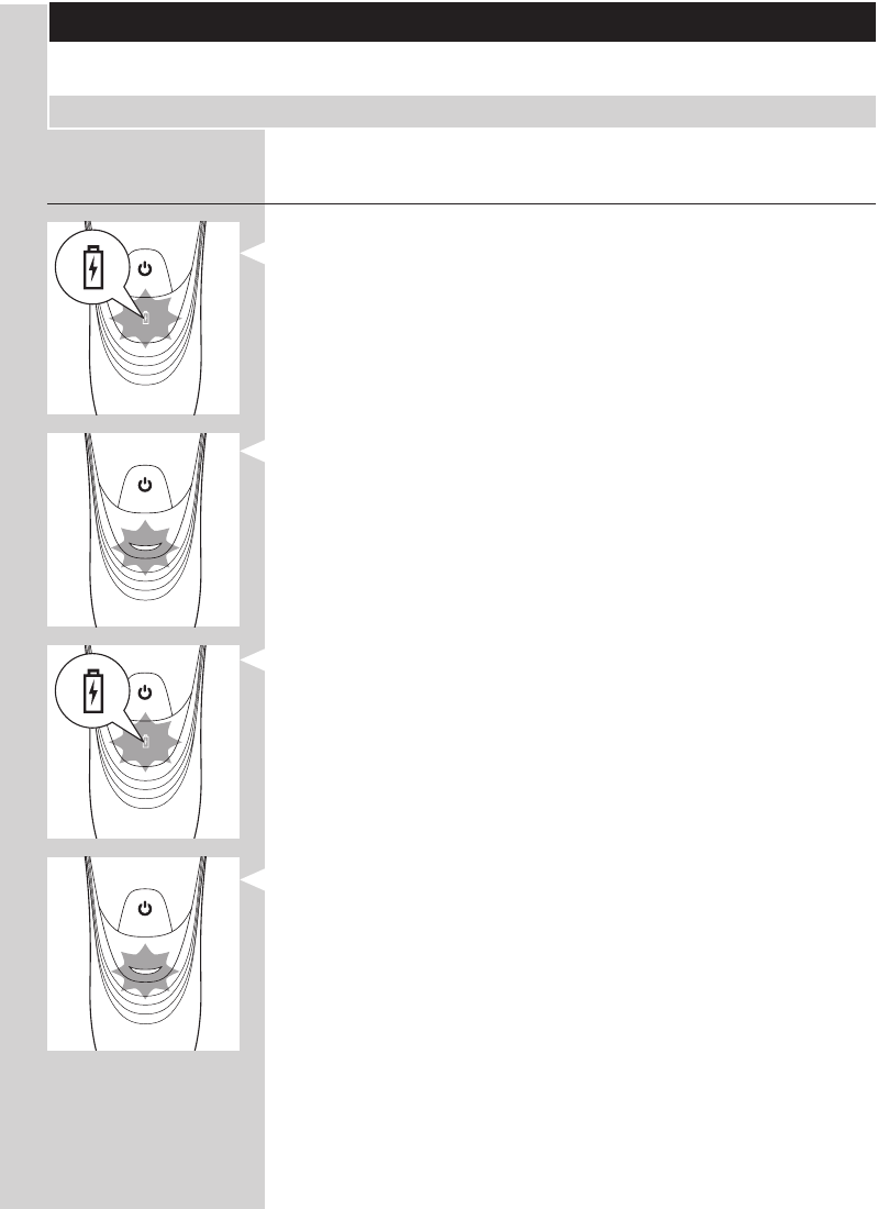 Po vypnutí holicího strojku symbol baterie ještě několik sekund bliká.