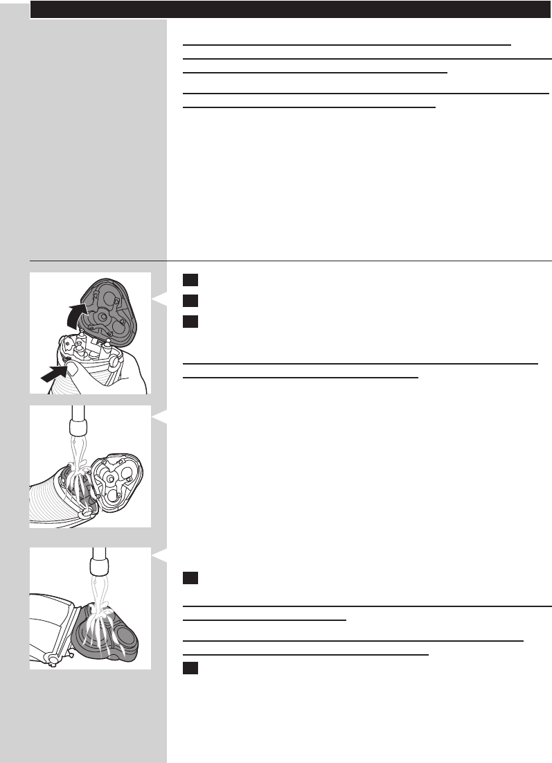 Izkratot lieko ūdeni no ierīces, raugieties, lai skūšanas bloka galviņa netiek