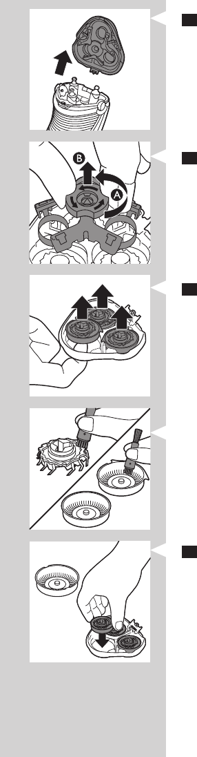 - Снимите вращающийся нож с неподвижного ножа и очистите его