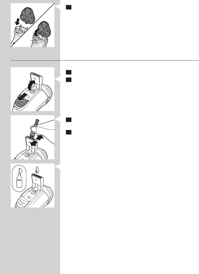 8 Ubacite ušicu jedinice za brijanje u prorez na vrhu aparata za brijanje.