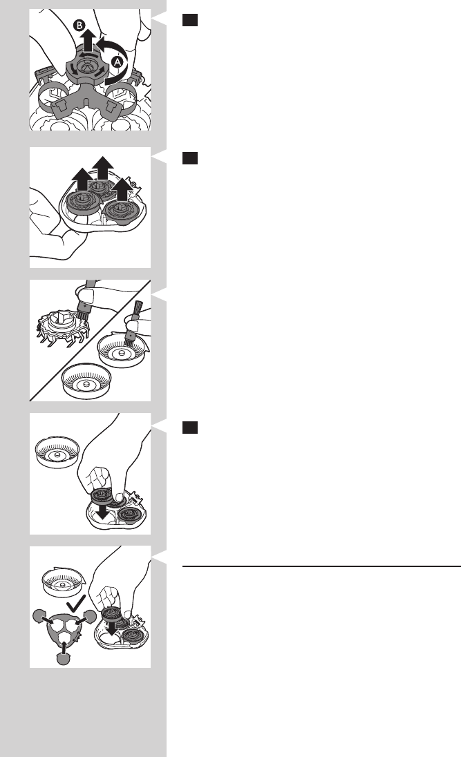 5 Виймайте та чистіть одну бритвену головку за раз. Бритвена