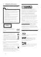 1 Důležité informace Upozornění na autorská práva Bezpečnost a důležité upozornění Varování • Nebezpečí přehřátí! Nikdy výrobek neumisťujte do • • • • • • uzavřených prostorů. Po všech stranách výrobku ponechejte vždy volný prostor nejméně 10 cm (z důvodu zajištění proudění vzduchu). Zajistěte, aby nedošlo k zakrytí ventilačních otvorů na výrobku závěsy nebo jinými předměty.