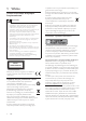 1 Ważne Ważne informacje dotyczące bezpieczeństwa Ostrzeżenie • Niebezpieczeństwo przegrzania! Nie umieszczaj • • • • • • urządzenia w ciasnej przestrzeni. W celu zapewnienia odpowiedniej wentylacji należy zachować odstęp o szerokości co najmniej 10 cm z każdej strony urządzenia. Upewnij się, że zasłony i inne przedmioty nie zakrywają otworów wentylacyjnych urządzenia. Nie stawiaj urządzenia, pilota ani baterii w pobliżu otwartego ognia lub innych źródeł ciepła.