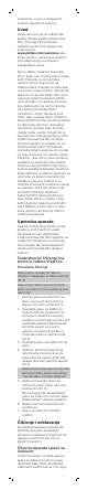 1 1 2 8 3 9 4 5 10 6 12 11 7 Srpski Opšti opis (Sl. 1) 1 2 3 4 Zaštitni poklopac Glava četkice Iglica za povezivanje Dugme za uključivanje/isključivanje 5 Indikator koji označava da je baterija skoro prazna 6 Drška 7 Utičnica za mali priključak 8 Ispupčenje protiv prevrtanja 9 Jedinica za napajanje (adapter) 10 Indikator punjenja 11 Mali utikač 12 Donji poklopac Napomena: Glave sa četkicom se mogu razlikovati u zavisnosti od vrste aparata VisaPure.