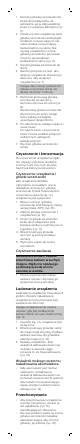 - - - - Nie używaj urządzenia z samodzielnie przygotowanymi środkami myjącymi ani środkami myjącymi zawierającymi żrące substancje chemiczne bądź ostre drobinki. Jeśli masz wrażliwą skórę lub odczuwasz podrażnienie po użyciu urządzenia z główką szczoteczki do skóry normalnej, zalecamy zmianę na główkę szczoteczki do skóry wrażliwej. Aby niknąć podrażnień, należy oczyszczać skórę nie dłużej niż przez 1 minutę.