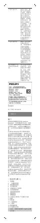 使用工具打開裝置或棄置充電式電 池時,請採取任何必要的安全預防 措施。 1 檢查產品背面是否有任何螺絲。 如 有的話請拆下. 2 使用螺絲起子拆除產品的背面和/或 正面護板 (圖 17)。 必要時,也可 拆下其他螺絲和/或零件,直到清楚 看見印刷電路板與充電式電池 (圖 18)為止。 如果需切割 (圖 19)電線 以便更深入地觸及充電式電池,每 次僅可切割一根。 3 取出充電式電池 (圖 20)。 保固與支援 如需資訊或支援,請造 訪:www.philips.com/support,或參 閱全球保固說明書。 疑難排解 本章概述了使用本裝置最常遇到的問 題。 如果無法利用以下資訊解決遇到 的問題,請造訪 www.philips.