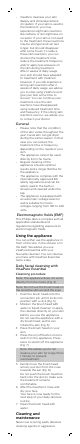 - - - - - - If the adapter is damaged, always have it replaced with one of the original type in order to avoid a hazard. The adapter contains a transformer. Do not cut off the adapter to replace it with another plug, as this causes a hazardous situation. Fully charge the appliance at least every 3 months to sustain battery lifetime. Do not insert metal-containing material into the socket for the appliance plug to avoid short circuiting.