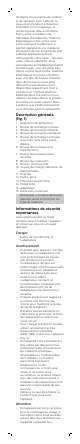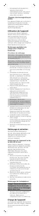 - - - - - - - - - - N’utilisez pas l’appareil plus de deux fois par jour. Pour des raisons hygiéniques, nous vous conseillons de ne pas prêter l’appareil à d’autres personnes. Lorsque vous nettoyez l’appareil, la température de l’eau ne doit pas dépasser celle à laquelle vous vous douchez (max. 40 °C). Ne mettez pas l’appareil ou une de ses pièces au lave-vaisselle. Chargez, utilisez et rangez l’appareil à une température comprise entre 10 °C et 40 °C.