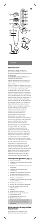 usuario y consérvelo por si necesitase consultarlo en el futuro. Peligro - Mantenga seco (Fig. 2) el adaptador. Advertencia - - - - - - - - No utilice el aparato, los cabezales ni el adaptador si están deteriorados o rotos, ya que podrían provocar lesiones. Si el adaptador está dañado, sustitúyalo siempre por otro del modelo original para evitar situaciones de peligro. El adaptador contiene un transformador.