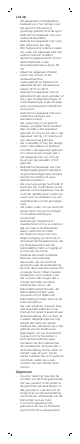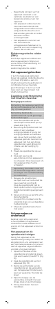 Let op - - - - - - - - - - Dit apparaat is ontwikkeld en bedoeld voor het reinigen van het gezicht, behalve het gevoelige gebied rond de ogen. Gebruik het apparaat niet voor andere doeleinden. Gebruik het apparaat niet meer dan twee keer per dag. Om hygiënische redenen raden we u aan het apparaat niet met andere mensen te delen. Spoel het apparaat niet af met water dat heter is dan douchetemperatuur (max. 40 °C). Maak het apparaat of delen ervan niet schoon in de vaatwasmachine.