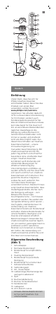Wichtige Sicherheitsinformationen Lesen Sie diese Bedienungsanleitung vor dem Gebrauch des Geräts aufmerksam durch, und bewahren Sie sie für eine spätere Verwendung auf. Gefahr - Halten Sie das Ladegerät trocken (Abb. 2). Warnhinweis - - - - - - - - Gerät, Bürstenköpfe oder Adapter bei Beschädigung oder Defekt nicht verwenden, um Verletzungen zu vermeiden. Wenn der Adapter defekt oder beschädigt ist, darf er nur durch ein Original-Ersatzteil ausgetauscht werden, um Gefährdungen zu vermeiden.