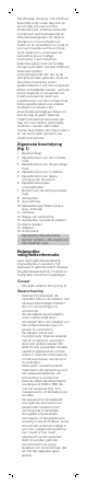 De adapter schoonmaken Gevaar: Houd de adapter altijd droog. Spoel de voet niet af onder de kraan en dompel deze ook nooit onder in water. 1 Zorg ervoor dat de adapter niet is aangesloten wanneer u deze schoonmaakt. Veeg de adapter uitsluitend af met een droge doek. Het apparaat opladen Het opladen van het apparaat duurt ongeveer 8 uur. Een volledig opgeladen apparaat heeft een snoerloze gebruikstijd tot 20 minuten. Opmerking: U kunt het apparaat niet gebruiken als het rechtstreeks op het lichtnet (Fig.