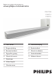 1 2 3 4 5 6 Help en ondersteuning 2 Veelgestelde vragen Contact opnemen met Philips 2 2 Kennisgeving 2 2 2 2 Belangrijk 3 3 4 4 Uw SoundBar 4 4 5 Uw SoundBar aansluiten 6 6 6 Compliance Netzekering Handelsmerken Veiligheid De zorg voor uw product De zorg voor het milieu Apparaat Afstandsbediening Subwoofer Connectoren Audio van een TV en andere apparaten aansluiten Uw SoundBar gebruiken Audio vanaf een TV of andere apparaten afspelen Het volume aanpassen Uw geluid kiezen MP3-speler Fa