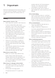 1 Important Read and understand all instructions before you use your product. If damage is caused by failure to follow instructions, the warranty does not apply. Safety Risk of electric shock or fire! • Never expose the product and accessories to rain or water. Never place liquid containers, such as vases, near the product. If liquids are spilt on or into the product, disconnect it from the power outlet immediately. Contact Consumer Care to have the product checked before use.