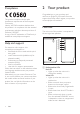 Compliance This product complies with the radio interference requirements of the European Community. Hereby, WOOX Innovations, declares that this product is in compliance with the essential requirements and other relevant provisions of Directive 1999/5/EC. A copy of the EC declaration of Conformity is available at www.philips.com/support. Help and support For extensive online support, visit www.philips.