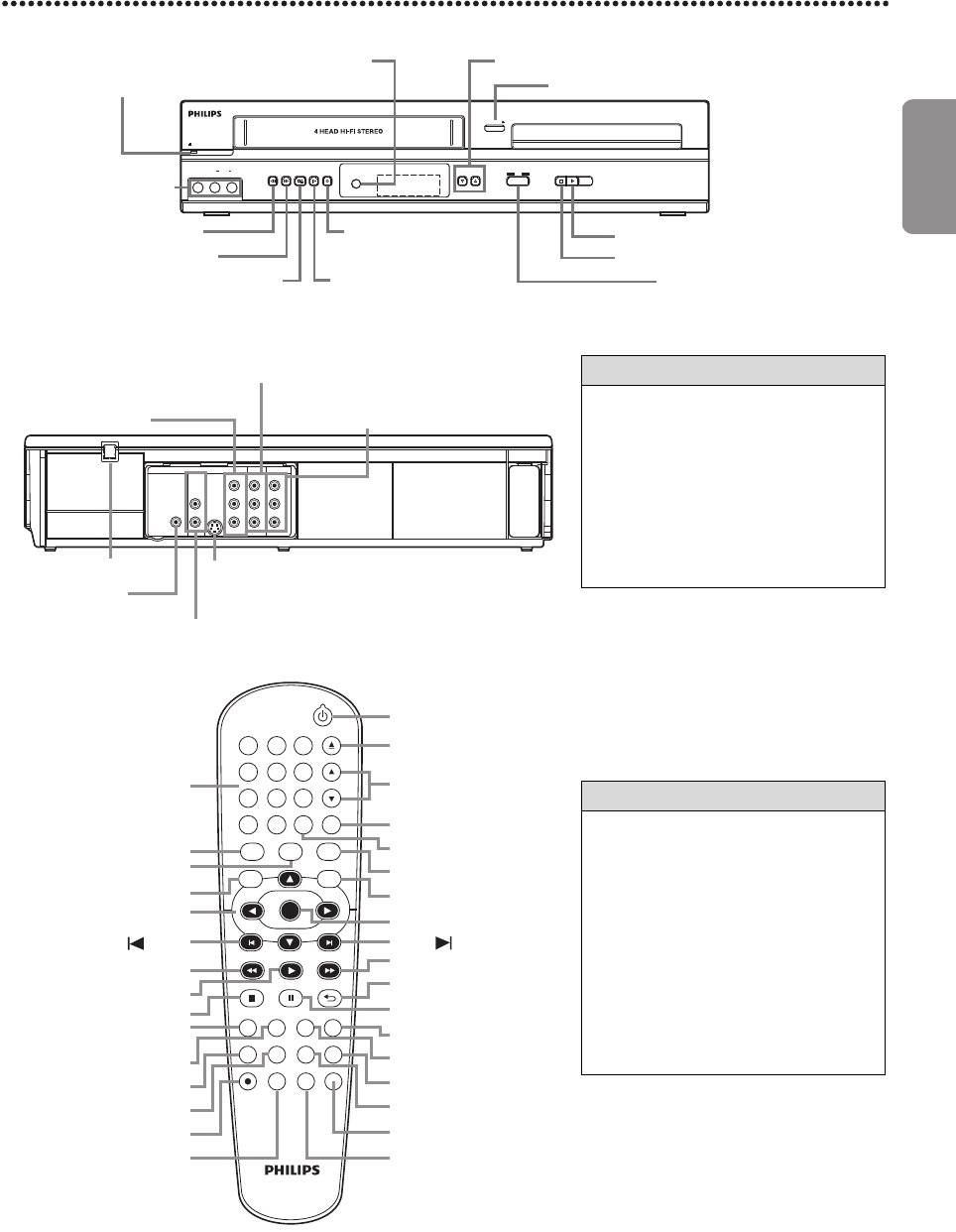 Panel frontal, Panel trasero y Control remoto