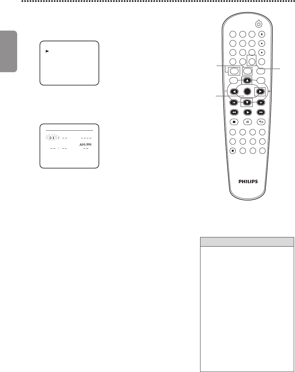 Siga estos pasos para configurar el reloj del VCR. Asegúrese de que: