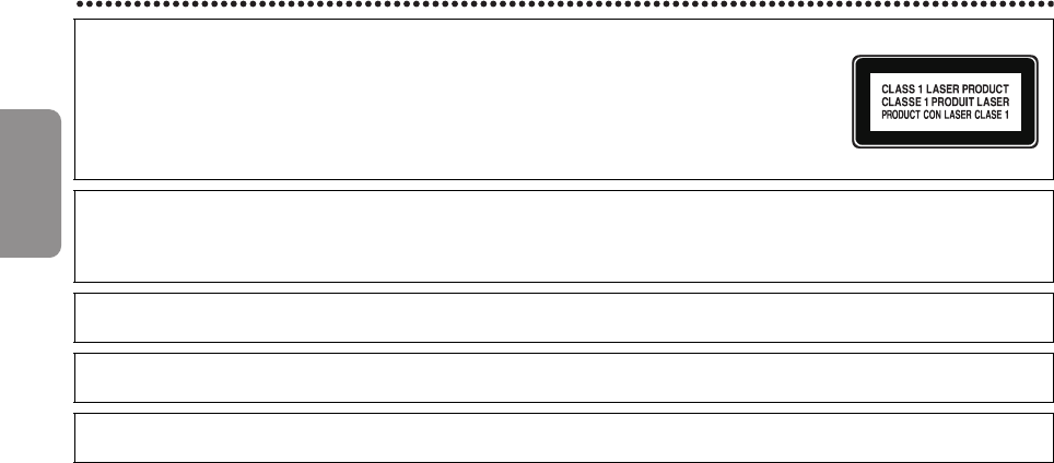 Este aparato es clasificado como PRODUCT CON LASER CLASE 1. Este aparato utiliza un