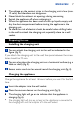ENGLISH Cleaning Always remove the adapter from the wall socket before cleaning the charging unit. When you have used the appliance to suck up liquids, empty and dry the dust compartment. 1 Clean the appliance with a damp cloth. Emptying the dust compartment Make sure you empty the dust compartment and clean the filter regularly. 1 Hold the appliance over a dustbin and press the dust compartment release button (fig. 12). 2 Remove the filter holder from the dust compartment (fig. 13).
