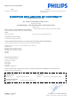 Philips Consumer Lifestyle B.V. 2016/01 1152 (Document No. / Ziņojums Nr) (Year, Month (yyyy/mm) in which the CE mark is affixed / Gads kurā CE zīme ieviesta) EUROPEAN DECLARATION OF CONFORMITY (EC deklarācija atbilstība) We, PHILIPS CONSUMER LIFESTYLE B.V.