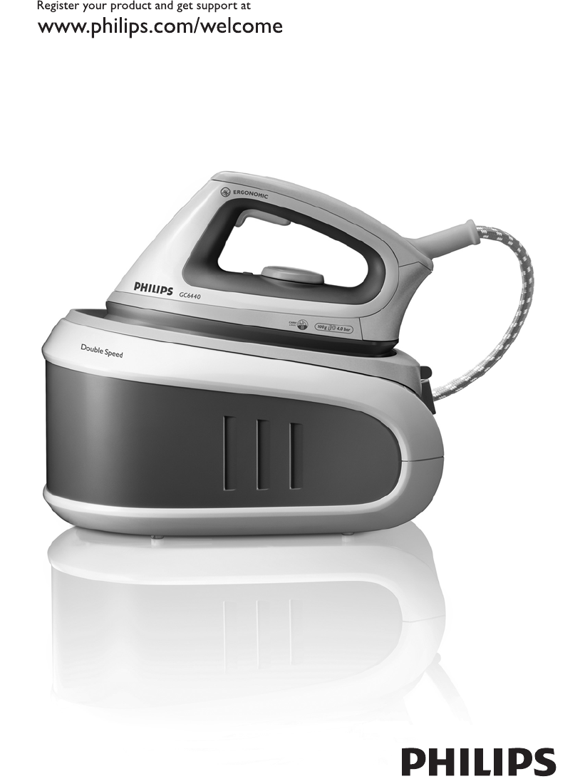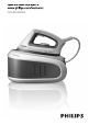 Français -- Si le cordon d’alimentation ou le cordon d’arrivée de la vapeur est endommagé, il doit être remplacé par Philips, par un Centre Service Agréé Philips ou par une personne qualifiée afin d’éviter tout accident. -- Ne laissez jamais l’appareil sans surveillance pendant qu’il est branché.