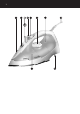 EESTI 55 Kirjeldus A B C D E F G H I J Piserdi (GC1121/1120/1115/1015) Täiteava Piserdi nupp T (GC1121/1120/1115/1015) Aurukontroll - O = kuivtriikimine - q = keskmine aurupahvak - w = maksimaalne aurupahvak - x = katlakivi eemaldusfunktsioon Lisaauru funktsioon (vajuta aururegulaatorit) (GC1121/1120) Temperatuuriregulaator Temperatuuri märgutuli Juhe Andmeplaat Veepaak Pange tähele! Lugege see kasutusjuhend hoolikalt läbi ja hoidke alles edaspidiseks.