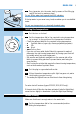 FRANÇAIS 25 Rangement C 1 Retirez la fiche de la prise de courant et positionnez le bouton vapeur sur O. 2 Videz le réservoir. 3 Laissez le fer refroidir complètement. Enroulez le cordon d'alimentation autour du support de rangement et fixez l'extrémité à l'aide du clip. 4 Rangez toujours le fer sur son talon et placez-le sur une surface stable et sèche. Informations et service Pour plus d'informations, visitez notre Philips Web site : www.philips.