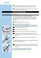 ENGLISH 3 If the amber pilot light comes on after the iron has been moved, wait for it to go out before you start ironing. 4 If the amber light does not come on after the iron has been moved, the iron is ready for use. Cleaning and maintenance Calc-Clean The Calc-Clean function removes scale and impurities. Use the Calc-Clean function once every two weeks. If the water in your area is very hard (i.e.