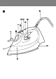 SVENSKA Allmän beskrivning (bild 1) A Spraymunstycke B Påfyllningslock (endast GC2225/2220/2215/GC2130/2126/2125/2120) C Påfyllningsöppning D Ångpuffknapp 9 (endast GC2225/2220/2215/GC2130/2126/2125/2120/2115/2110) E Sprayknapp T F Ångvred - O = ingen ånga - Á = minimal ånga - q = måttlig ånga (endast GC2225/2220/2215/GC2130/2126/2125/2120) - w = maximal ånga - 1 = avkalkningsfunktion G Funktion för extra ånga (endast GC2105) H Temperaturlampa (alla typer) och lampa för automatisk avstängning (endast G