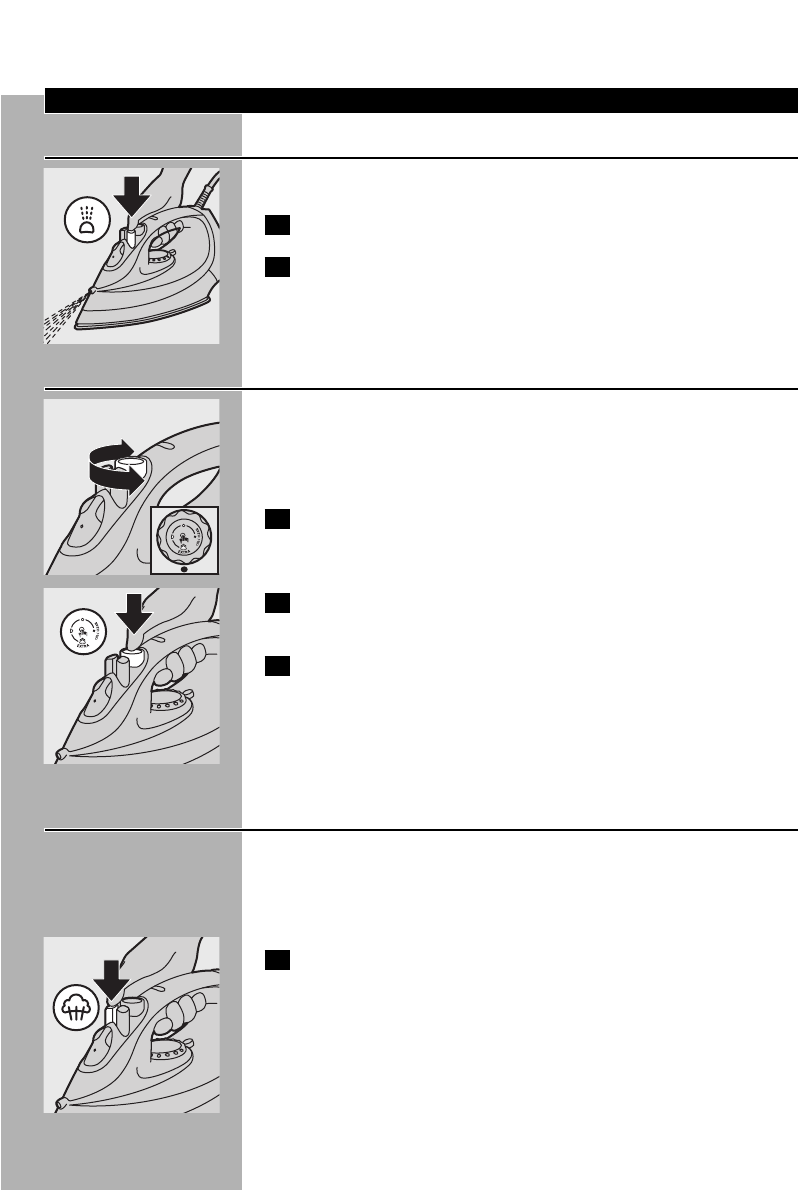 2 Ütülenecek materyali ıslatmak için, sprey düğmesine birkaç kez