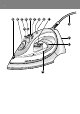 ENGLISH General description A Spray nozzle B Filling cap (GC2425/2420/2415/GC2330/2326/2325/2320 only) C Shot-of-steam button (GC2425/2420/2415/ GC2330/2326/2325/2320/2315/2310 only) D Spray button T E Steam control - O = no steam - Á = minimum steam - q = moderate steam (GC2425/2420/2415/GC2330/2326/2325/2320 only) - w = maximum steam - 1 = Calc-Clean function F Extra-steam function (GC2305 only) G Temperature light H Automatic shut-off light (GC2425/GC2330 only) I Temperature dial J Mains cord K Type