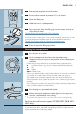 SLOVENŠČINA Čiščenje in vzdrževanje Calc-Clean funkcija To je funkcija čiščenja apnenca, ki odstrani usedline in nečistočo. To funkcijo čiščenja uporabite enkrat na vsaka dva tedna. Če je voda v vašem lokalnem vodovodu zelo trda (ko se med likanjem skozi grelno oz. likalno ploščo izločajo apnenčasti delčki), morate to funkcijo čiščenja uporabljati pogosteje. 1 Parni regulator nastavite na položaj 0. 2 Napolnite rezervoar za vodo do maksimalnega nivoja.