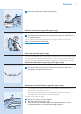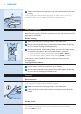Svenska 2 Dra ut stickkontakten när temperaturlampan har slocknat. 3 För försiktigt det heta strykjärnet över en tygbit för att få bort eventuella vattenfläckar som kan ha bildats på stryksulan. 4 Låt strykjärnet svalna innan du ställer undan det. Förvaring 1 Vrid ångvredet till läge 0, dra ut stickkontakten ur vägguttaget och låt strykjärnet svalna. 2 Töm vattentanken. 3 Linda nätsladden runt sladdhållaren. 4 Förvara strykjärnet stående på hälen på en säker och torr plats.