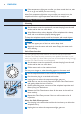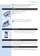 English 4 When the temperature light goes out, wait a while before you start ironing. During ironing, the temperature light goes on from time to time. This indicates that the iron is heating up to the set temperature. Using the appliance Note:The iron may give off some smoke when you use it for the first time.This stops after a short while. Steam ironing 1 Make sure that there is enough water in the water tank.