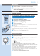 Norsk 47 - Den røde lampen for automatisk avslåing blinker for å vise at strykejernet er slått av ved hjelp av funksjonen for automatisk avslåing. Slik varmer du opp strykejernet igjen: 1 Løft strykejernet eller beveg det litt. , Den røde indikatoren slukkes. , Hvis temperaturen på strykesålen er under innstilt stryketemperatur, lyser temperaturlampen. 2 Hvis temperaturlampen slås på når du har beveget på strykejernet, venter du til den slukkes før du begynner å stryke.