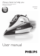 English 9 Do not use the Ionic DeepSteam function, as this function has no effect when you iron without steam. 2 Set the required ironing temperature (see chapter ‘Preparing for use’, section ‘Setting the temperature’). After ironing 1 Remove the mains plug from the wall socket. 2 If you have been steam ironing, empty the water tank. 3 Let the iron cool down in a safe place. Features Spray function You can use the spray function at any temperature to moisten the article to be ironed.