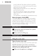 English 17 Do not put vinegar or other descaling agents in the water tank. 4 Set the temperature dial to MAX. 5 Put the plug in an earthed wall socket. 6 Unplug the iron when the temperature light goes out. 7 Hold the iron over the sink, press and hold the Calc-Clean button and gently shake the iron to and fro. ,, Steam and boiling water come out of the soleplate. Impurities and flakes (if any) are flushed out. 8 Release the Calc-Clean button as soon as all the water in the tank has been used up.