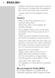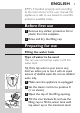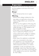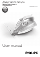 Important ENGLISH 7 Read this user manual carefully before you use the appliance and save it for future reference. Danger -- Never immerse the iron in water. Warning -- Check if the voltage indicated on the type plate corresponds to the local mains voltage before you connect the appliance. -- Do not use the appliance if the plug, the mains cord or the appliance itself shows visible damage, or if the appliance has been dropped or leaks.