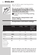 ENGLISH 11 1 Specific types only: remove the heatresistant protective cover. Do not leave the heat-resistant protective cover on the soleplate during ironing. 2 Put the iron on its heel. 3 To set the required ironing temperature, turn the temperature dial to the appropriate position (see the ‘Temperature and steam settings’ table above). Check the laundry care label for the fabric type.