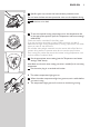 LATVIEŠU 105 Gludināšana bez tvaika 1 Pagrieziet tvaika vadību pozīcijā 0 (= bez tvaika). 2 Iestatiet nepieciešamo gludināšanas temperatūru (skatiet nodaļas “Sagatavošana lietošanai” sadaļu “Temperatūras un tvaika režīma izvēle”). Gludināšana ar tvaiku 1 Pārliecinieties, vai tvertnē ir ūdens. 2 Iestatiet nepieciešamo gludināšanas temperatūru (skatiet nodaļas “Sagatavošana lietošanai” sadaļu “Temperatūras un tvaika režīma izvēle”).