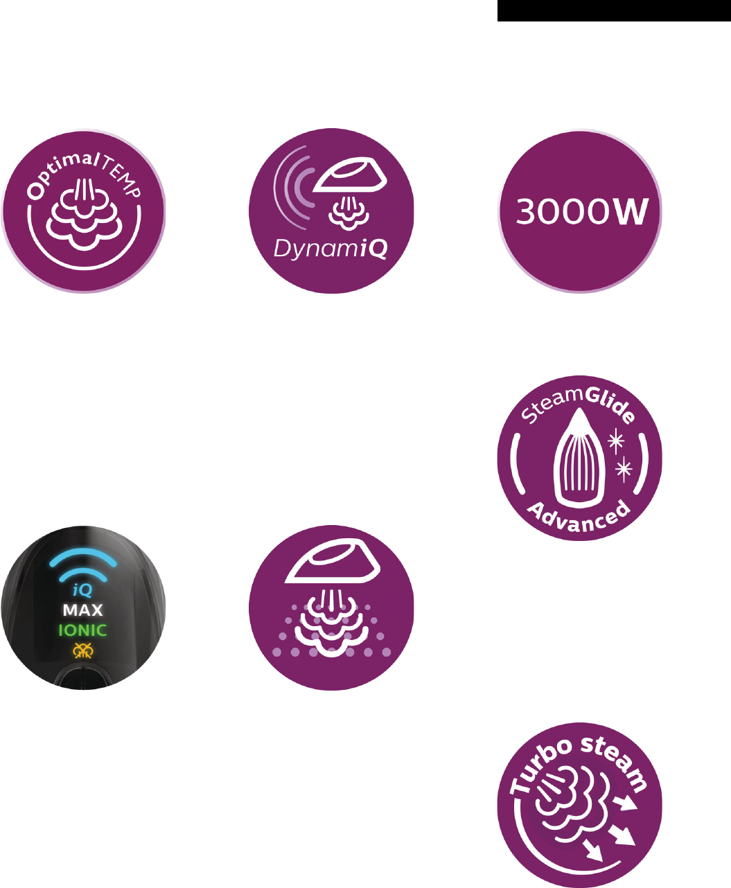 3.000 W Konstante Dampfleistung von 70 g/Min., Dampfstoß von 260 g, SteamGlide Advanced Bügelsohle