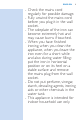 Dansk -- Kontrollér med jævne mellemrum, at netledningen er hel og ubeskadiget. -- Rul netledningen helt ud, før du sætter stikket i stikkontakten. -- Strygesålen kan blive ekstremt varm og forårsage brandsår ved berøring. -- Når du er færdig med at stryge, når du rengør apparatet, når du forlader strygejernet - selvom det kun er i et kort øjeblik og også under vandpåfyldning: Stil strygejernet vandret, eller stående lodret, på et stabilt underlag, og tag stikket ud af stikkontakten.
