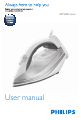 English Table of contents Important 6 Introduction 7 Product overview 8 Before first use 8 Using the appliance 9 Checking the water hardness 9 Filling the water tank 10 Heating up 10 Temperature and steam setting 11 Ironing 11 Putting down the iron during ironing 12 ECO mode (specific types only) 13 Ironing tips 13 Safety Auto-off 13 Cleaning and maintenance 13 Storage 14 Troubleshooting 14 Important Read this user manual carefully before you use the appliance and save it for future reference.