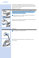 English 7 Caution -- Only connect the appliance to an earthed wall socket. -- Always place and use the appliance on a stable, level and horizontal surface. If you prefer to place the iron on its heel, make sure that you place it on a stable surface. -- Check the mains cord regularly for possible damage. -- Fully unwind the mains cord before you plug it in the wall socket. -- The soleplate of the iron can become extremely hot and may cause burns if touched.
