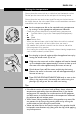 ENGLISH C 3 Pour water into the steam tank (max. 1 litre). Use tap water to fill the tank up to the maximum level. If the tap water in your area is very hard, we advise you to mix tap water with an equal portion of distilled water, or to use distilled water only. Do not use perfume, vinegar, starch or chemically descaled water. 4 Screw the cap tightly onto the filling aperture of the steam tank. Fast refill C 1 First set the on/off switch (D) to 'off'.