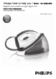 한국어 소개 필립스 제품을 구입해 주셔서 감사합니다! 필립스가 드리는 지원 혜택을 받으실 수 있도록 www.philips.co.kr 에서 제품을 등록하십시오. 본 제품을 사용하기 전에 이 사용자 설명서와 중요 정보 책자, 포장에 있는 요약 설명서 를 주의 깊게 읽고 나중에 참조할 수 있도록 잘 보관하십시오. 제품정보 (그림 3) 1 2 3 4 5 6 7 8 9 10 11 12 13 14 물탱크 물 주입구 이동용 고정장치(특정 모델만 해당) ’다림질 준비’ 표시등 석회질 제거 표시등이 있는 석회질 제거 버튼 스팀 버튼 온도 조절기 받침대 호스 전원 스위치 전원 코드 전원 플러그 호스 보관함 물탱크 스마트 석회질 제거 용기 온도 조절 온도 조절기를 적절한 위치로 돌려 원하는 온도를 설정하십시오. 설정된 다림질 온도에 따라 제품에서 스팀을 자동으로 조절합니다.