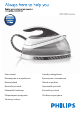 EN E CO mode – TURBO mode: By using the ECO mode (reduced amount of steam), you can save energy without compromising on the ironing result. Press the ECO button to switch between the ECO and normal mode. For the best results on tough fabrics you can use the TURBO mode. Press and hold the on/off button for 2 seconds until the light turns white. To deactivate the TURBO mode, press and hold the on/off button for 2 seconds again until the light turns blue.