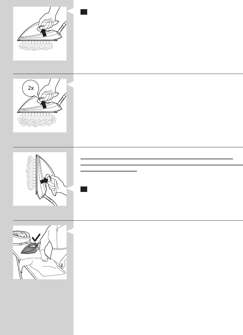 - Durante la stiratura, potete posizionare il ferro sia sull’apposita