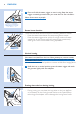 DEUTSCH Problem Mögliche Ursache Lösung Die Dampfeinheit ist nicht heiß genug, um Dampf zu produzieren. Warten Sie, bis die Bereitschaftsanzeige kontinuierlich leuchtet. Der Dampfauslöser wurde nicht gedrückt. Halten Sie den Dampfauslöser während des Bügelns gedrückt. Der Wassertank ist nicht ordnungsgemäß in die Dampfeinheit eingesetzt. Schieben Sie den Wassertank wieder in die Dampfeinheit, bis er mit einem “Klick” hörbar einrastet.